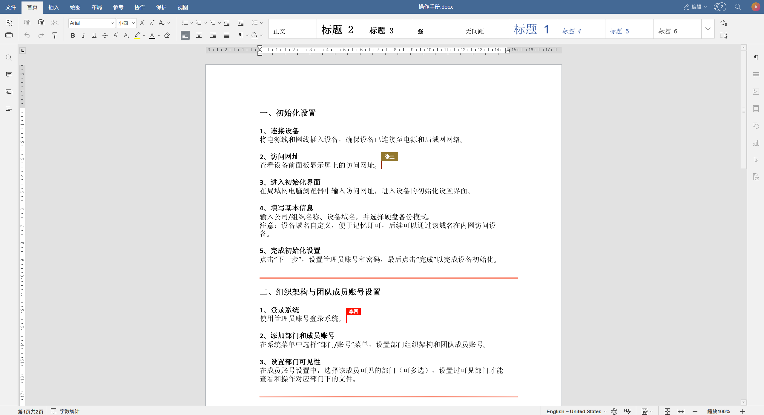 当多个成员同时打开同一文档时,系统自动进入 “协同编辑模式”。支持多人同时对文档进行编辑、评论、标注等操作。
