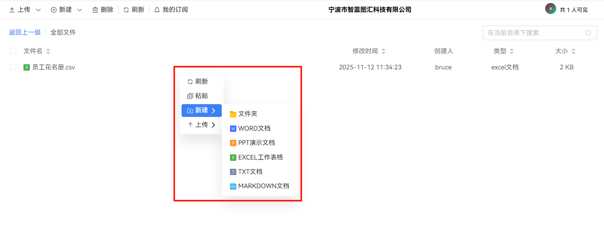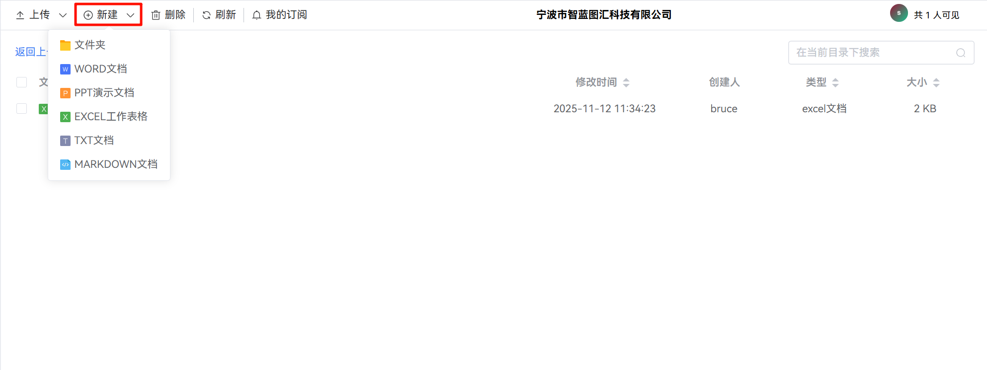 用户可在文件列表顶部工具栏中,通过“新建”按钮直接创建所需的文件类型。