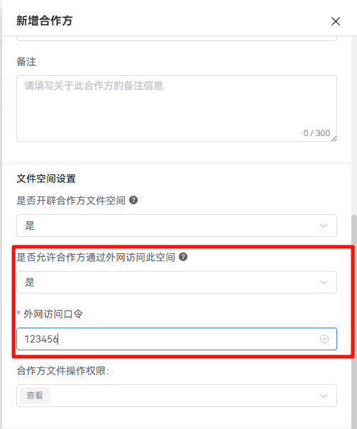 - 仅在创建合作方时选择开辟文件空间,系统才会为该合作方分配独立存储空间。