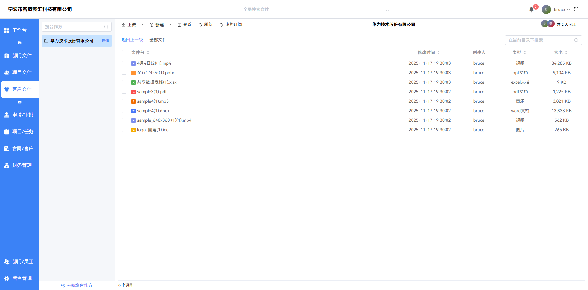 客户文件空间(又称合作方文件空间)为 每个合作方 提供 独立 的文件存储空间,用于集中管理与该合作方相关的所有文件。