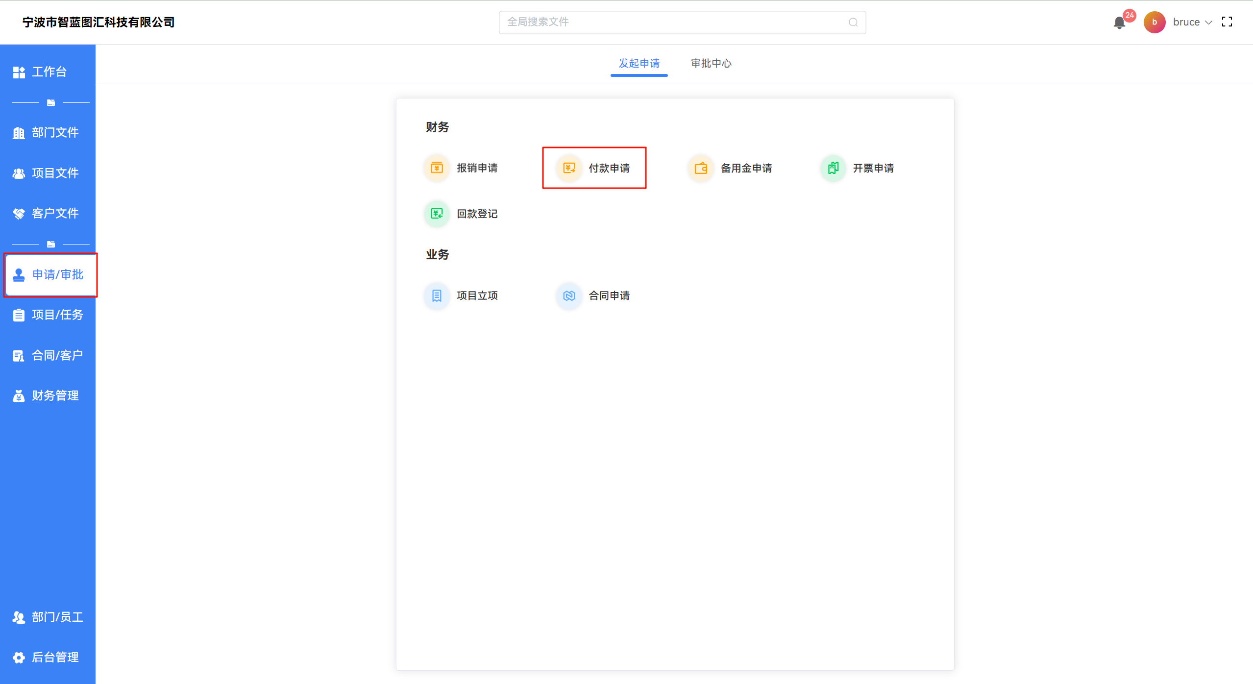 【申请/审批 -> 付款申请】