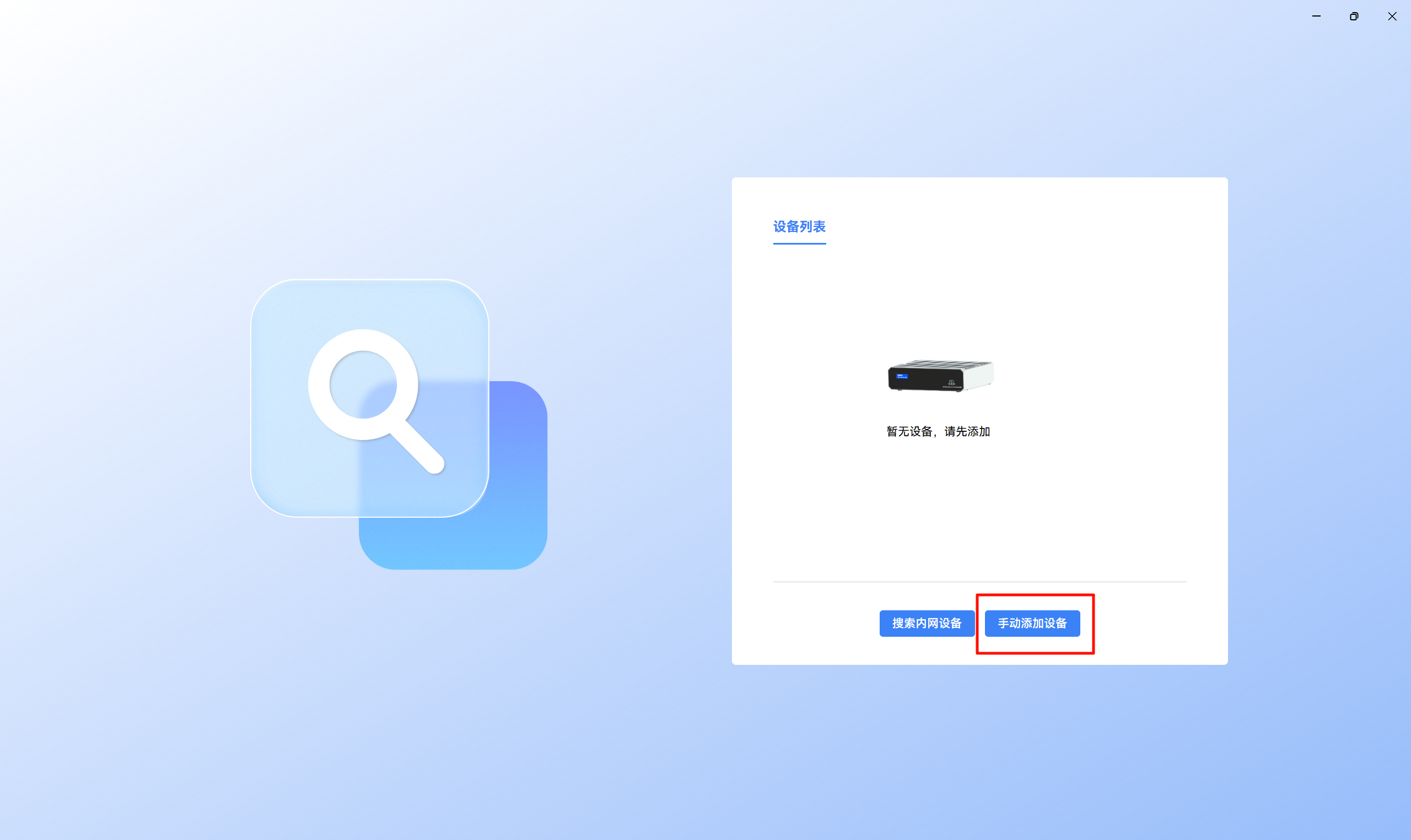 如果之前已通过局域网或远程连接过设备,打开客户端会自动连接,无需重复操作,可跳过下面步骤。