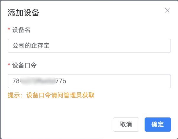 - 设备口令: (管理员后台打开外网权限后会生成,需要管理员提供)