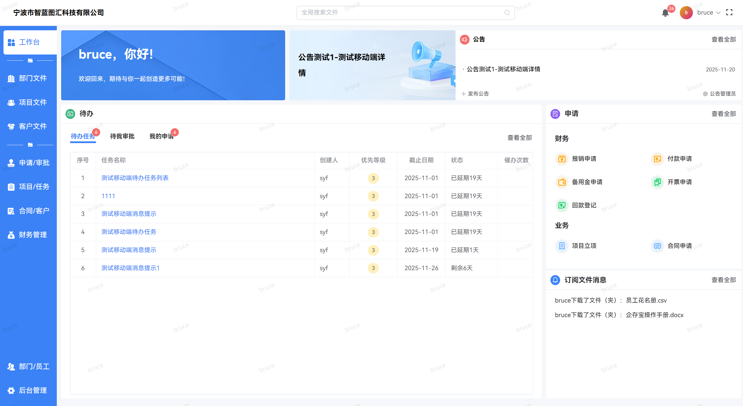 在员工使用系统查看数据的过程中,难免会出现 拍照、截图、转发 等行为。为确保外泄的截图或照片能够 追溯到来源人员,系统提供了水印功能,用于增强数据安全性与可追溯性。